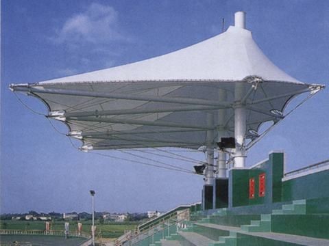 2、若是已经安装完毕,并且膜材已经开始发黄,那么不要强行用增白剂等直接刷洗,这样很容易损伤膜材,导致膜材寿命大幅缩短,或直接破损。同时也不得私自进行刷漆处理,因为普通的白漆可能存在腐蚀性,会腐蚀膜材,同样会破坏膜材表面。一般解决办法就是对球场体育看台的表面重新进行涂敷工作。
